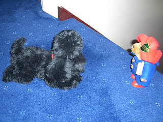 Little Paddington asked Daddy Paddington if he really needed his swimming trunks - and Daddy Paddington told him that he did. Little Paddington was most upset, but at least he had a nice view of the lovely pool.